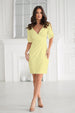 Η περιτυλιγμένη λαιμόκοψη τονίζει διακριτικά το μπούστο, ενώ τα σπαστά μανίκια προσθέτουν ελαφρότητα και πρωτοτυπία.