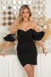 Εντυπωσιακό μίνι φόρεμα με γλυπτική γραμμή ώμων, που αποπνέει μοντέρνα κομψότητα και δυναμικό στυλ.