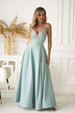 Το απαλό υλικό του αγκαλιάζει το σώμα, ενώ το φαρδύ, αέρινο κάτω μέρος πέφτει κομψά, χαρίζοντας κίνηση και λάμψη σε κάθε βήμα.