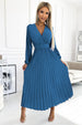 Διαθέτει κρουαζέ ντεκολτέ, μακριά μανίκια και μια φαρδιά ζώνη που αγκαλιάζει τη μέση και αναδεικνύει τη σιλουέτα με διακριτικό τρόπο.
