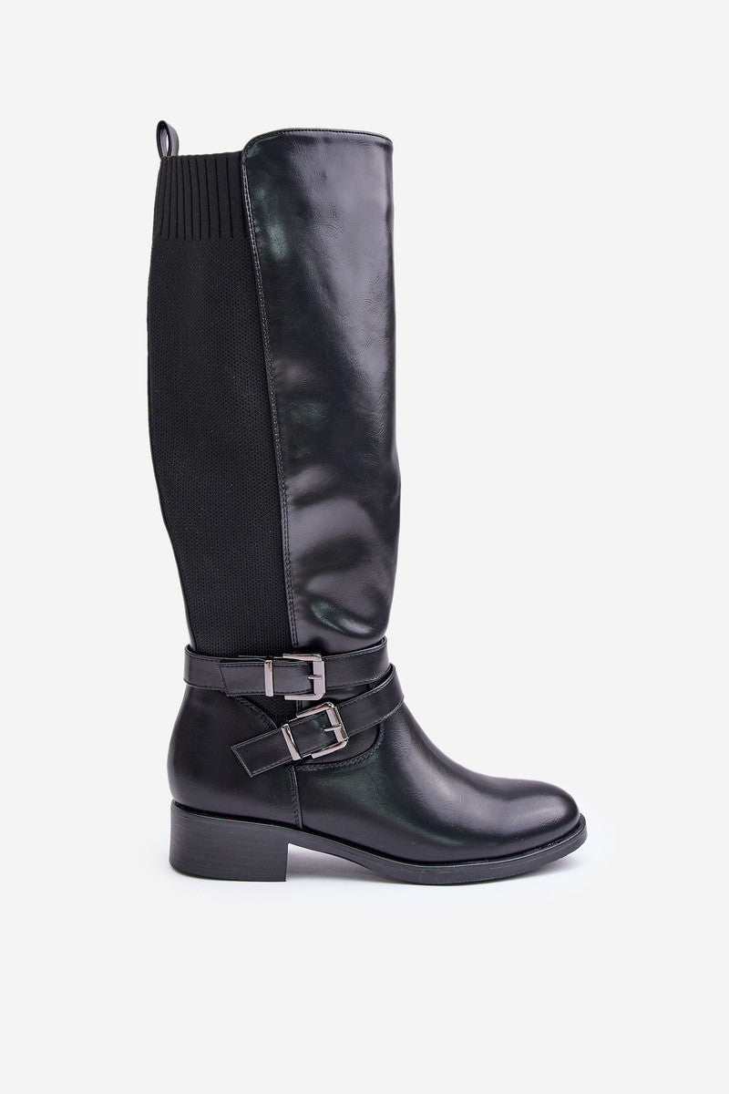 Γυναικείες μπότες ιππασίας κλασικής κοπής από οικολογικό δέρμα με χαμηλό τακούνι, παρέχουν άνεση για καθημερινή χρήση.