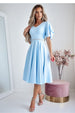 Οι φουσκωτοί, αέρινοι ώμοι προσφέρουν μία ρομαντική και παιχνιδιάρικη ζώνη, ενώ η διακοσμητική στη μέση, με τις λεπτομέρειες, προσδίδει επιπλέον θηλυκότητα και κομψότητα.