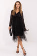 Τα μακριά μανίκια προσθέτουν διαχρονική φινέτσα, ενώ το κλος τούλινο κάτω μέρος χαρίζει ρομαντική κίνηση και ανάλαφρη αίσθηση.